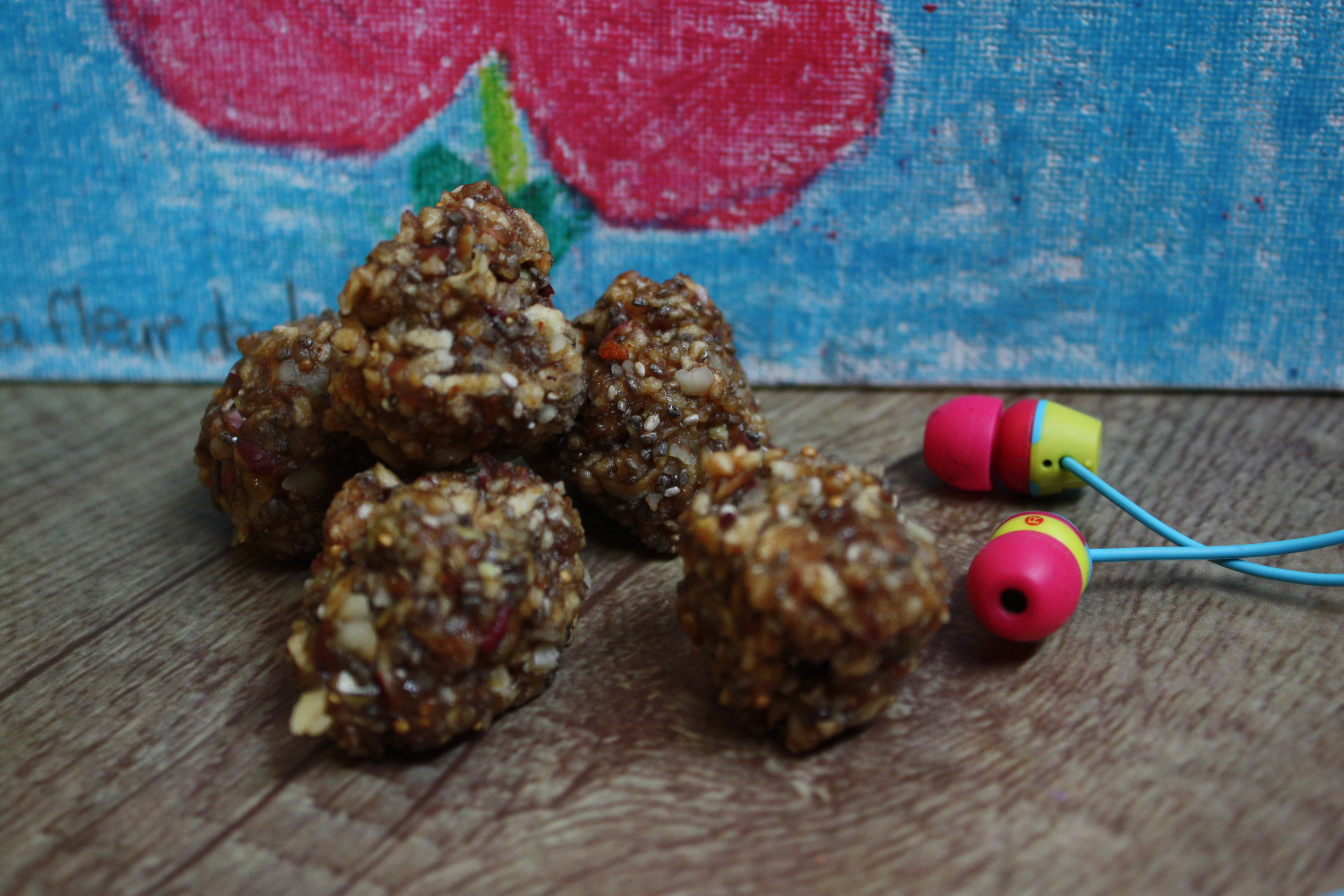 Tout est dedans, glucides, protéine, bon goût. Des bouchées vivantes qui se digèrent et se transporte très bien. La recette requièrent un deshydrateur, à moins que vous n’ayez besoin de votre four plusieurs heures.