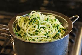 HUMM ça me fait penser que je ne vous ai jamais parlé de mes spaghettis-courgettes, non je ne vous parle pas de la courge spaghetti qui nous arrive à l’automne, mais de la courgette ou zucchini si vous avez un petit côté italien! J’utilise un couteau à julienne et le passe sur la longueur, il se transforme en spaghetti. Il existe un spiraleur qui fait vraiment des beaux spaghettis longs et frisés, mais bon, en cuisine c’est comme dans le sport (ou tout autre passe-temps!), la liste de ‘’ça me prendrait’’ s’allonge sans cesse!Spag